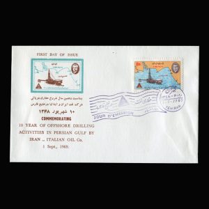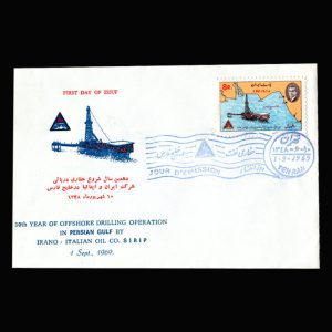 50 ریال – جمهوری اسلامی ایران – تاسیسات شرکت نفت – خوشه گندم و چرخ دنده نماد صنعت |
