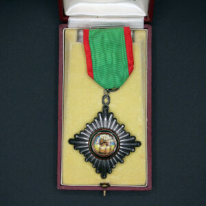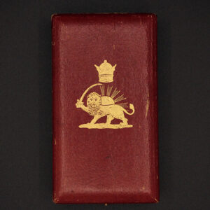 مدال همایونی درجه پنج با جعبه و ربان فابریک دوره رضا شاه پهلوی