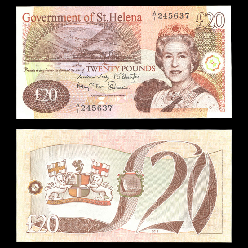 پرتره ملکه الیزابت دوم در سمت راست و جیمز تاون (پایتخت سنتهلنا) در سمت چپ |