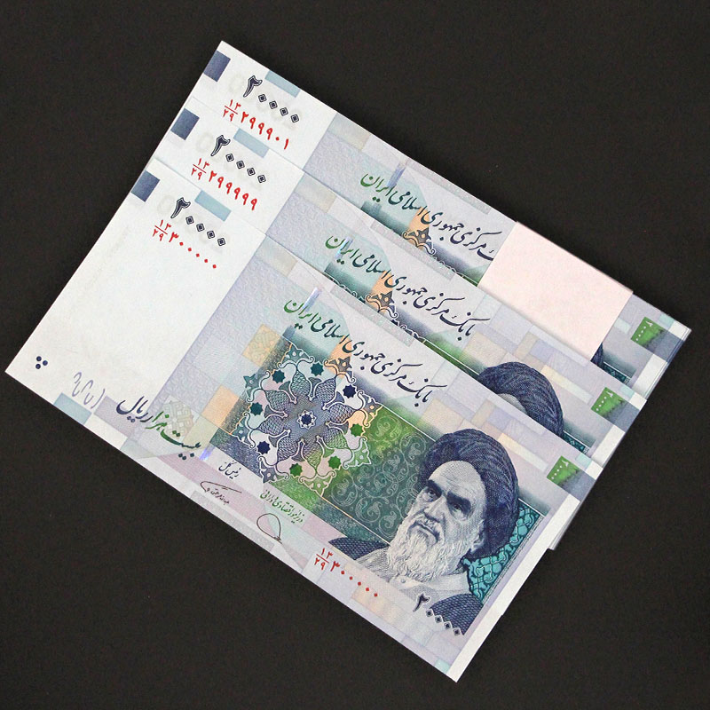 بسته یک تا صد اسکناس بیست هزار ریال دارای شماره راسته 300000