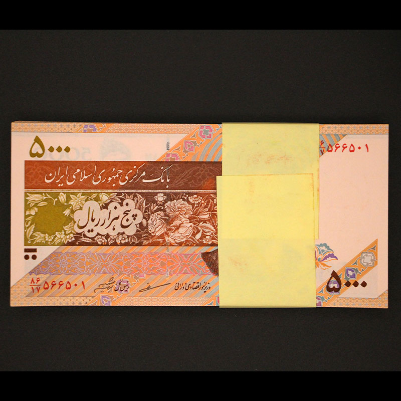 بسته یک تا صد اسکناس پنج هزار ریال مظاهری – شیبانی با شماره تکرار