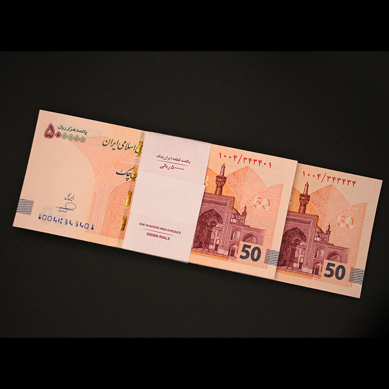 بسته یک تا صد اسکناس پنجاه هزار ریال شماره سه قلو 323232