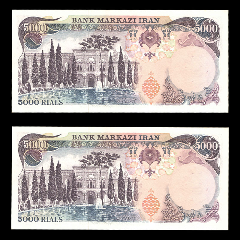 جفت اسکناس پنج هزار ریال سورشارژ دو مهر کتیبه_کمیاب