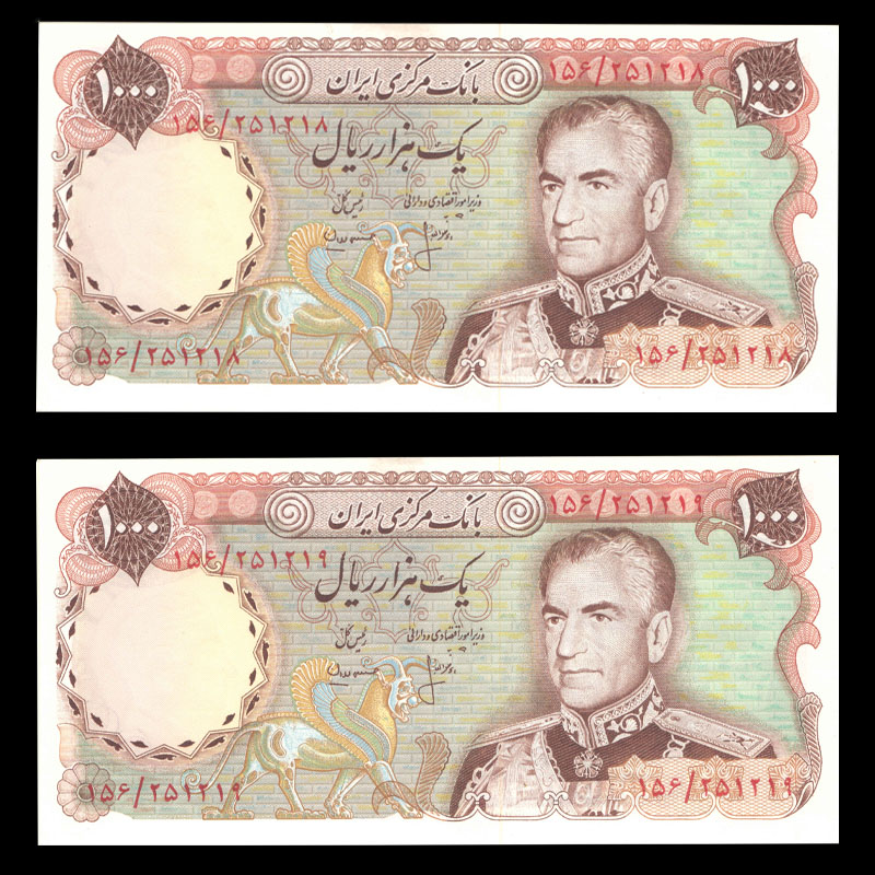 جفت اسکناس یک هزار ریال محمدرضا شاه پهلوی