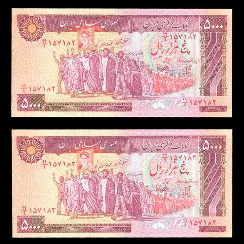 جفت جایگرین کمیاب اسکناس پنج هزار ریال تظاهراتی کسر 99/9