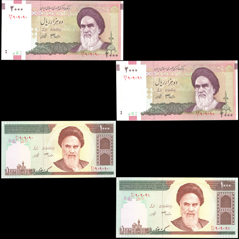 دو جفت اسکناس یک هزار ریال و دو هزار ریال هم شماره