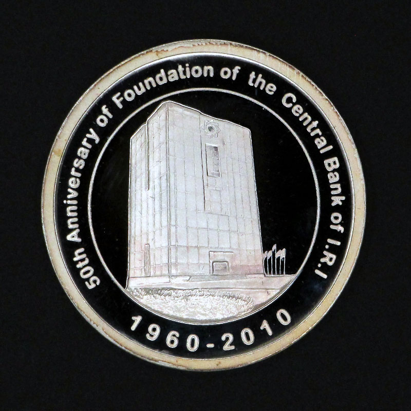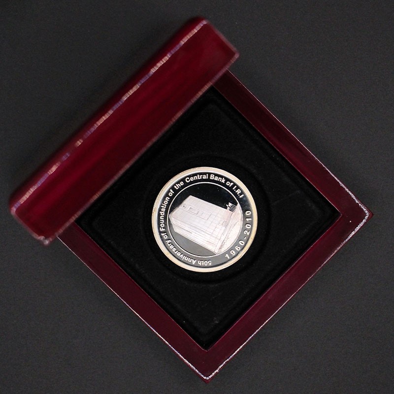 مدال یادبود پنجاهمین سال تاسیس بانک مرکزی با جعبه فابریک