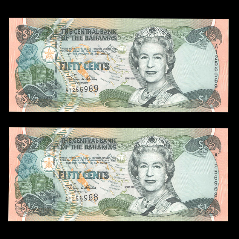 پنجاه سنت باهاماس با پرتره ملکه الیزابت