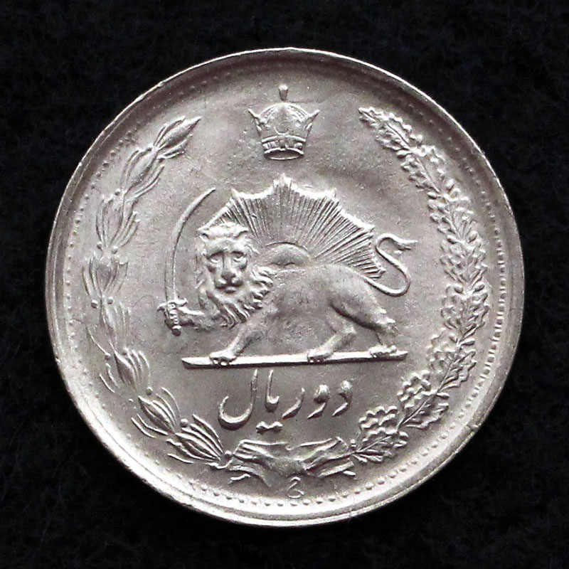 2 ریال – محمدرضا شاه پهلوی شاهنشاه ایران – برگ زیتون و بلوط – تاج – تاریخ |