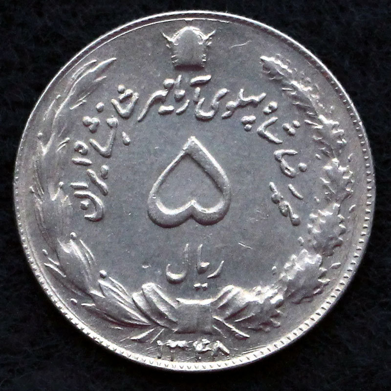 5 ریال – محمدرضا شاه پهلوی آریامهر شاهنشاه ایران – برگ زیتون و بلوط – تاج – تاریخ |