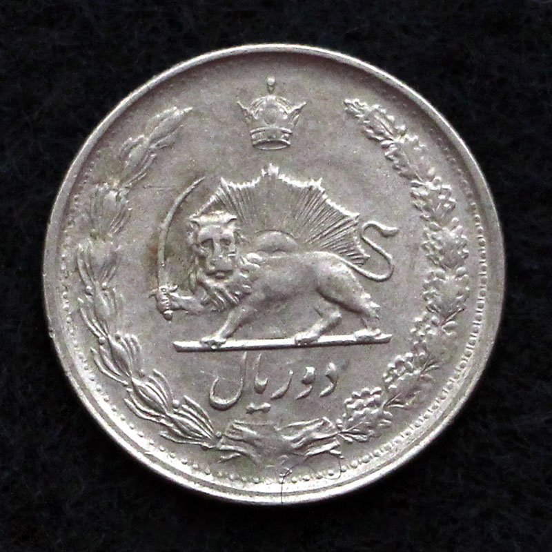 2 ریال – محمدرضا شاه پهلوی شاهنشاه ایران – برگ زیتون و بلوط – تاج – تاریخ
