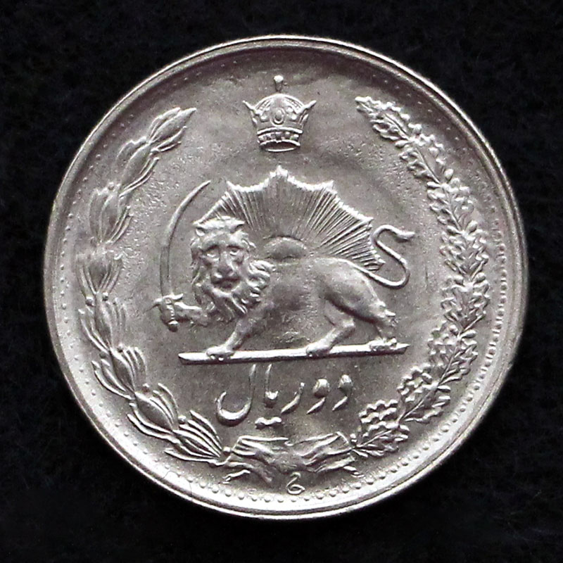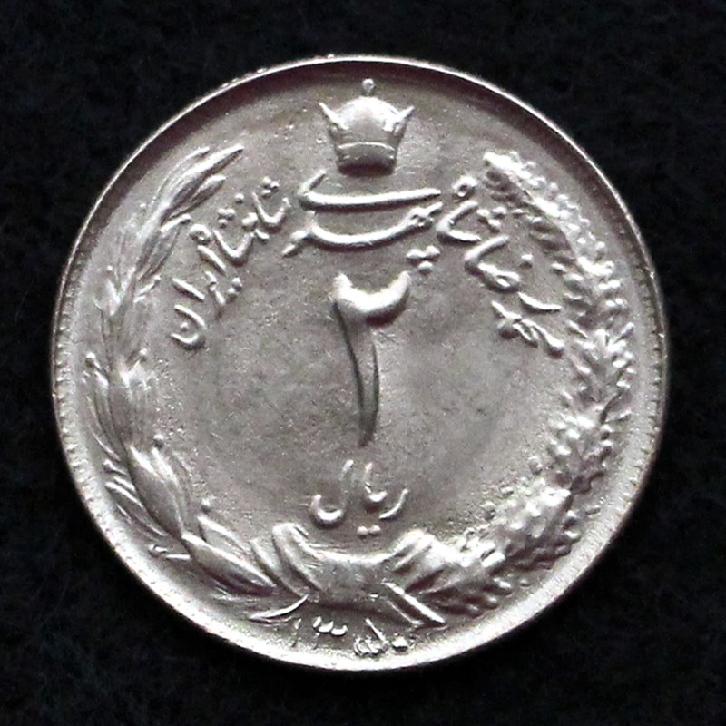 2 ریال – محمدرضا شاه پهلوی شاهنشاه ایران – برگ زیتون و بلوط – تاج – تاریخ |