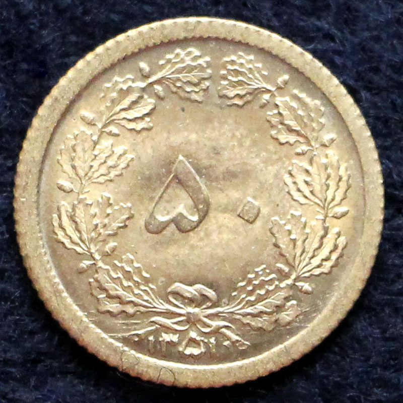 پنجاه دینار – شیر و خورشید – برگ زیتون و بلوط – تاج |