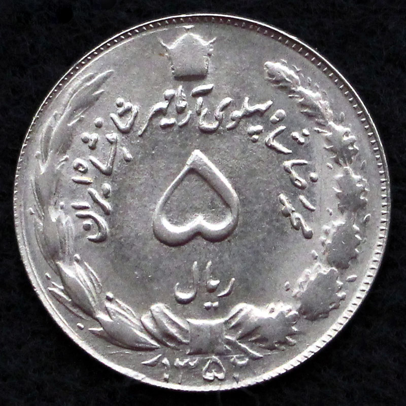 5 ریال – محمدرضا شاه پهلوی شاهنشاه ایران – برگ زیتون و بلوط – تاج – تاریخ