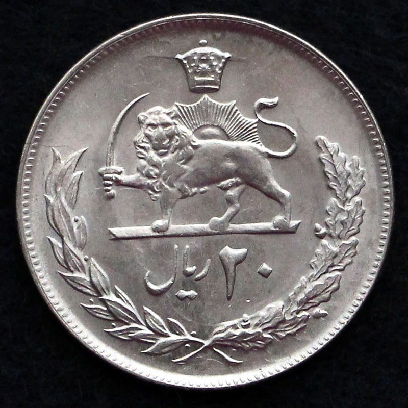 20 ریال – شیر و خورشید – برگ زیتون و بلوط – تاج |
