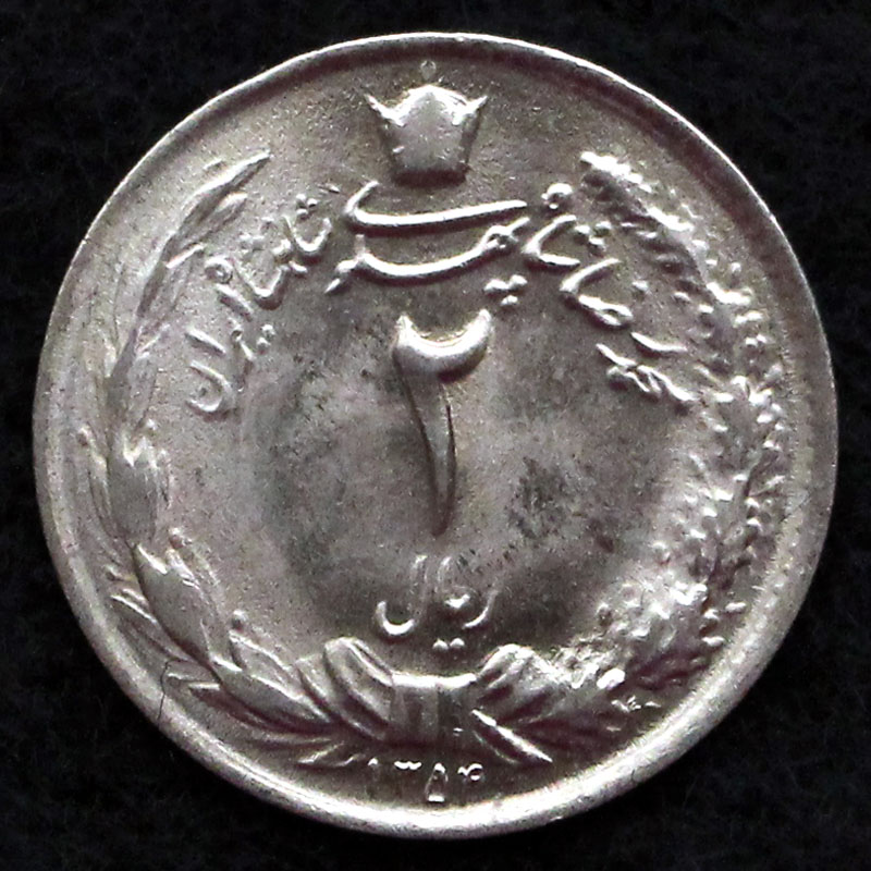 2 ریال – محمدرضا شاه پهلوی شاهنشاه ایران – برگ زیتون و بلوط – تاج – تاریخ |