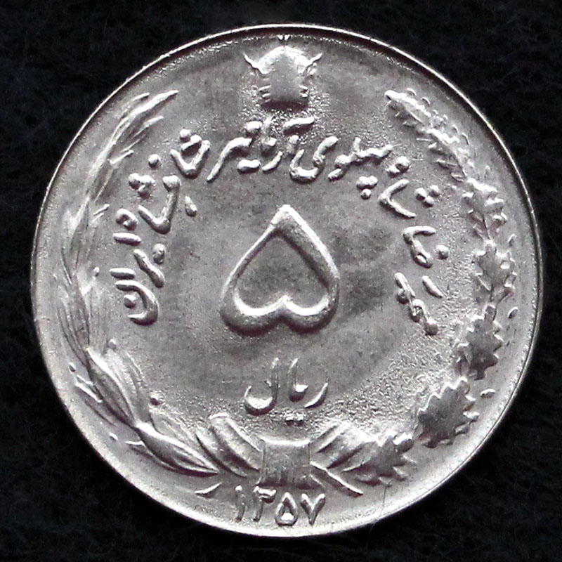 5 ریال – محمدرضا شاه پهلوی آریامهر شاهنشاه ایران – برگ زیتون و بلوط – تاج – تاریخ |