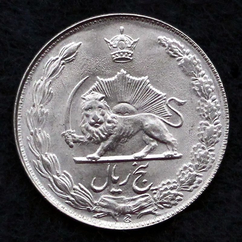 پنج ریال – شیر و خورشید – برگ زیتون و بلوط – تاج |