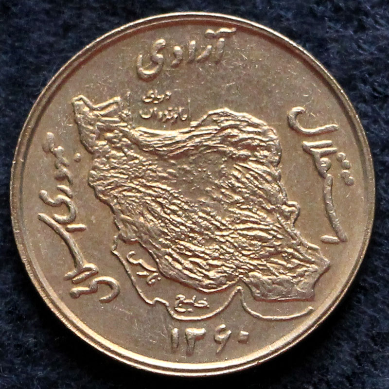 50 ریال جمهوری اسلامی ایران 1360 – نقشه ایران – مسی