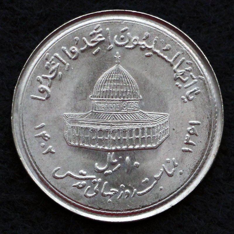 10 ریال – مسجد الاقصی – بمناسبت روز جهانی قدس – تاریخ خورشیدی و قمری – یا ایها المسلمون اتحدو اتحدو |