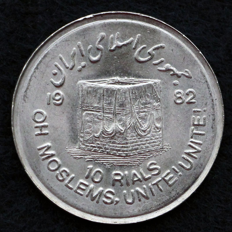 10 Rials – جمهوری اسلامی ایران – خانه خدا – تاریخ میلادی 1982 – OH MOSLEMS, UNITE!UNITE! |