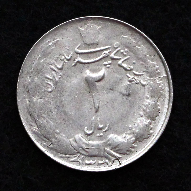 2 ریال – محمدرضا شاه پهلوی شاهنشاه ایران – برگ زیتون و بلوط – تاج – تاریخ |