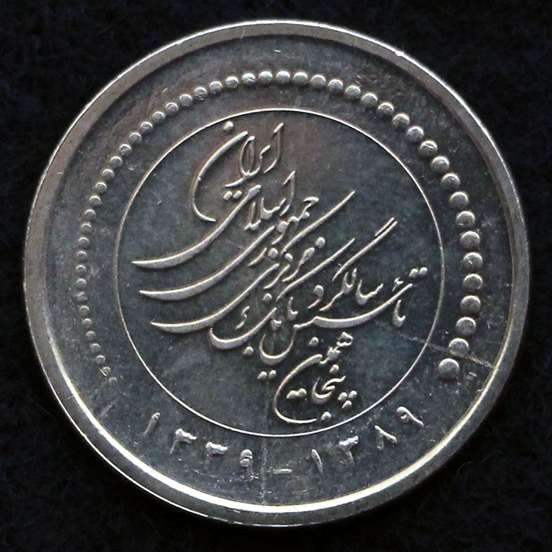 5000 ریال جمهوری اسلامی ایران 1389 – پنجاهمین سالگرد بانک مرکزی – نیکل