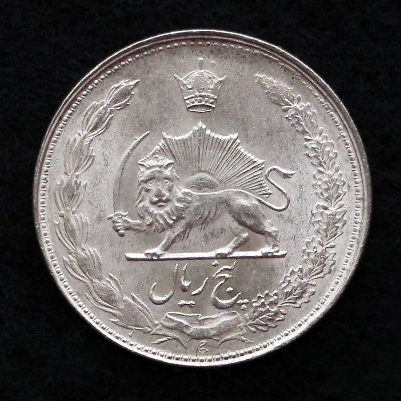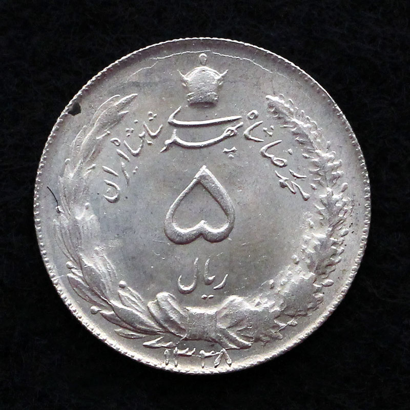 5 ریال – محمدرضا شاه پهلوی شاهنشاه ایران – برگ زیتون و بلوط – تاج – تاریخ |