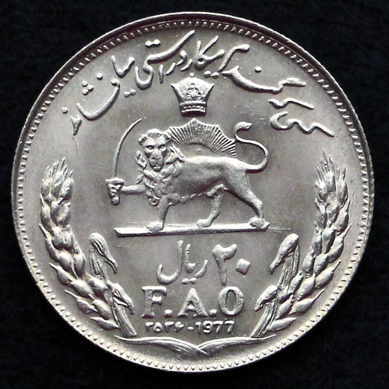 20 ریال محمدرضا شاه پهلوی 2536 – یادبود فائو – تیپ یک – نیکل