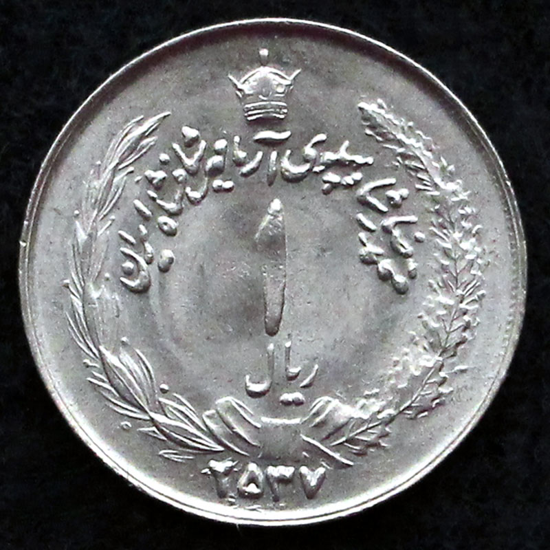 1 ریال محمدرضا شاه پهلوی 2537 شاهنشاهی – آریامهر – نیکل