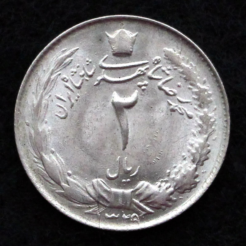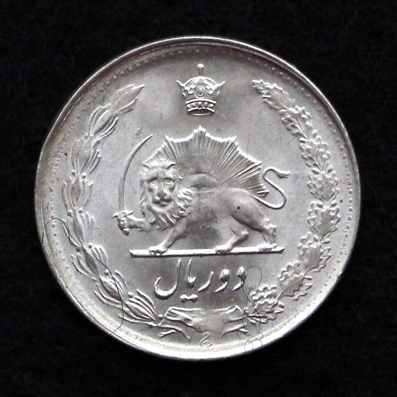 2 ریال – محمدرضا شاه پهلوی شاهنشاه ایران – برگ زیتون و بلوط – تاج – تاریخ |