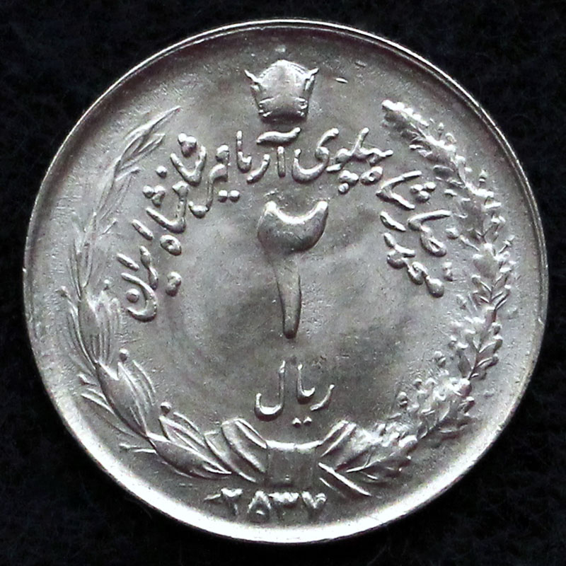 2 ریال محمدرضا شاه پهلوی 2537 شاهنشاهی – آریامهر – نیکل