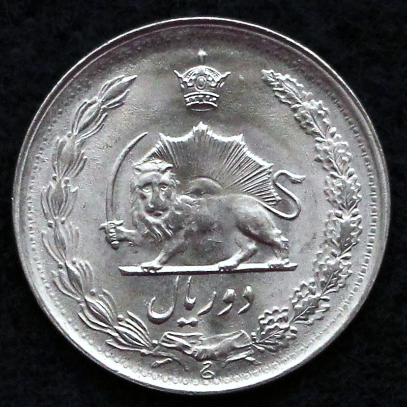 2 ریال – محمدرضا شاه پهلوی آریامهر شاهنشاه ایران – برگ زیتون و بلوط – تاج – تاریخ |