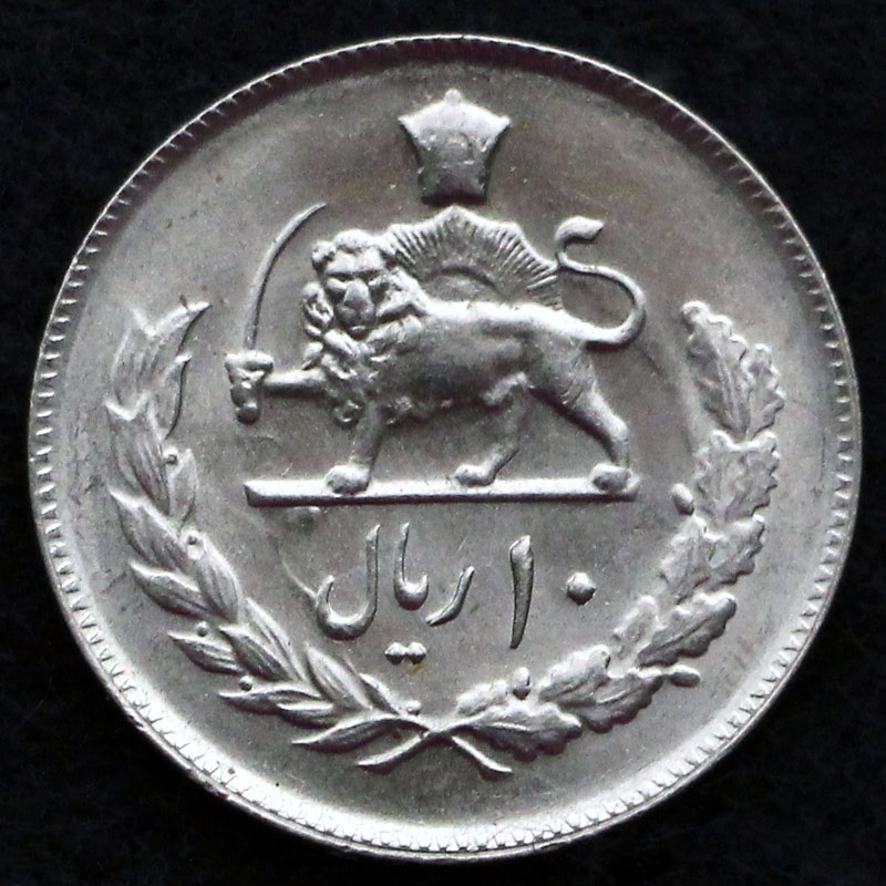 10 ریال – شیر و خورشید – برگ زیتون و بلوط – تاج |