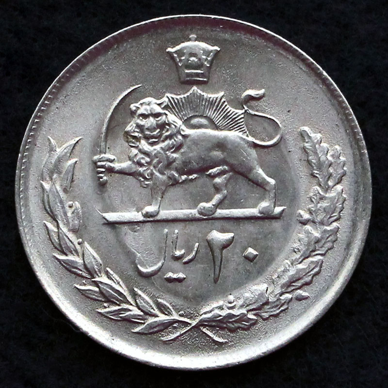 20 ریال – شیر و خورشید – برگ زیتون و بلوط – تاج |