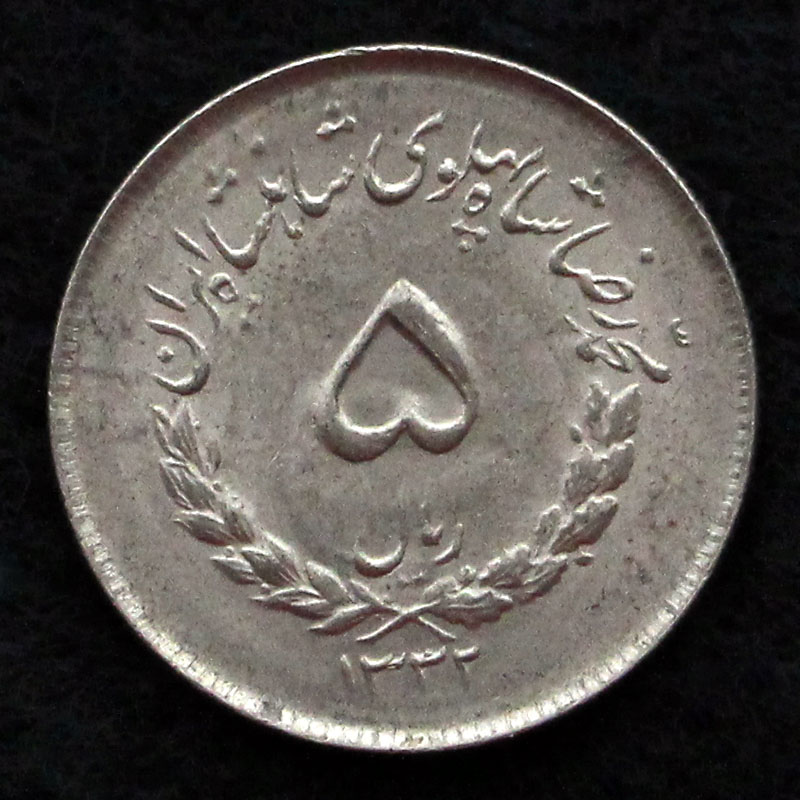 5 ریال – محمدرضا شاه پهلوی شاهنشاه ایران – برگ زیتون و بلوط – تاریخ |