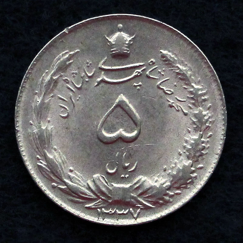 5 ریال – محمدرضا شاه پهلوی شاهنشاه ایران – برگ زیتون و بلوط – تاج – تاریخ |