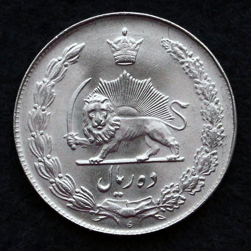 10 ریال – محمدرضا شاه پهلوی شاهنشاه ایران – برگ زیتون و بلوط – تاج – تاریخ