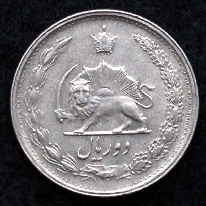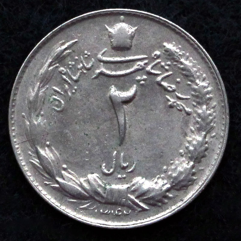 2 ریال – محمدرضا شاه پهلوی شاهنشاه ایران – برگ زیتون و بلوط – تاج – تاریخ