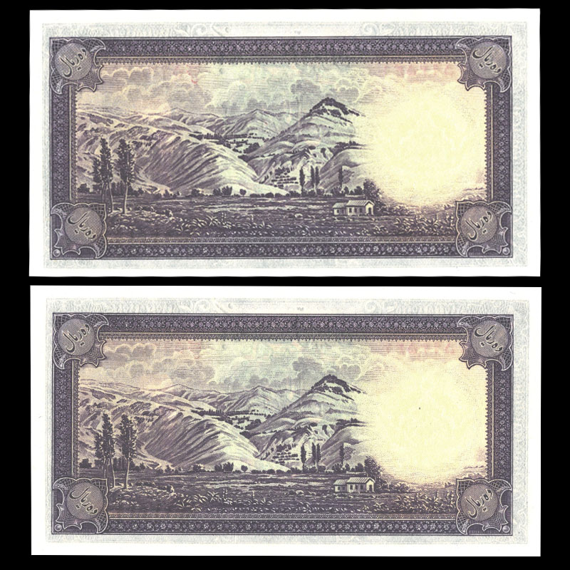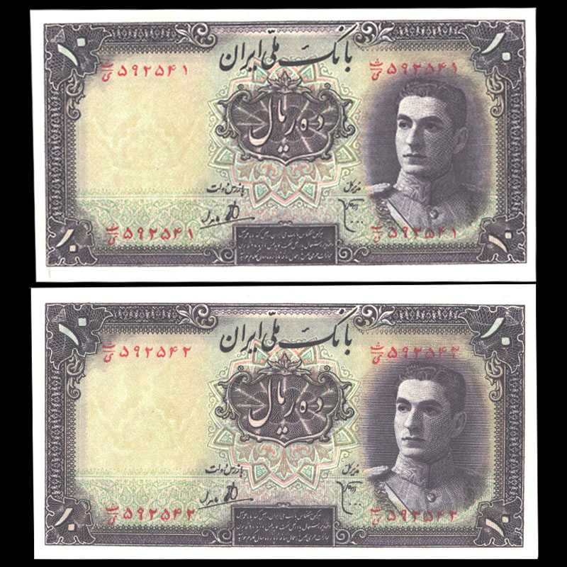 اسکناس زیبا ده ریال محمدرضا شاه پهلوی با استفاده از تصویر جوان او در روی اسکناس و با طراحی مشابه اسکناس های رضاشاه به چاپ رسید.