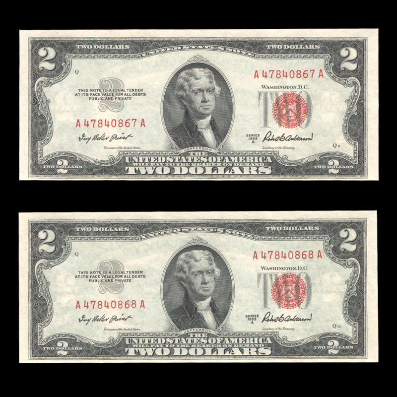 - اسکناسهای دو دلاری با مهر قرمز پس از پایان چاپ در سال 1966 به شدت کلکسیونی شدند.