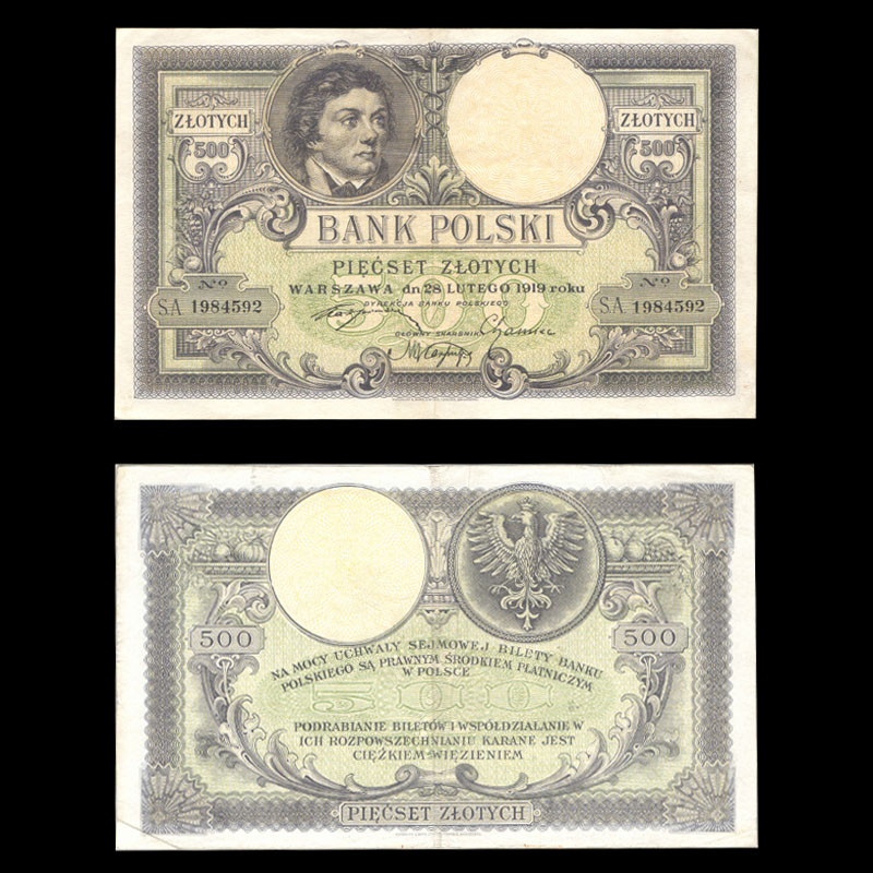 - در زمان چاپ لهستان تازه پس از جنگ جهانی اول به استقلال رسیده بود، به همین علت اسکناسها با نمادهای ملی، قهرمانان ملی و نماد عقاب لهستان طراحی شدند تا هویت ملی و استقلال کشور بازنمایی شود.